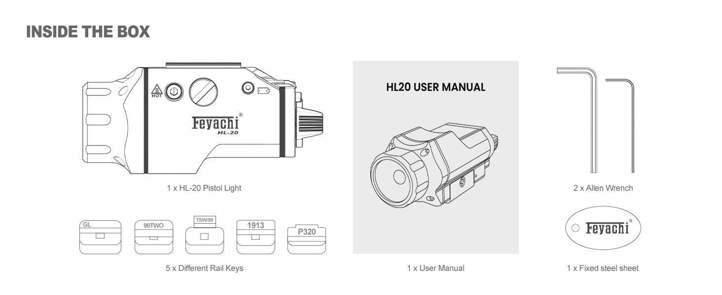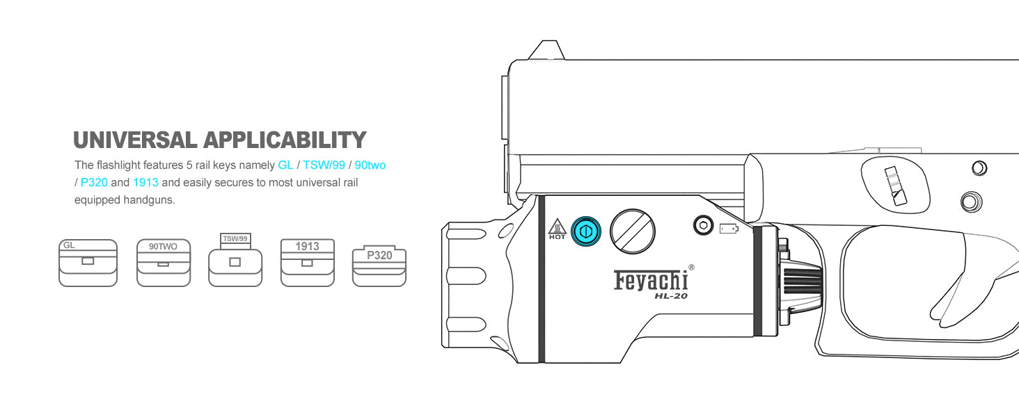 • 【Compatibilità universale】 Il pacchetto torcia a pistola è compatibile con la maggior parte delle pistole universali dotate di binario. Viene fornito con 5 diverse chiavi di localizzazione, GL, TSW/99, 90two, P320 e 1913 ecc., che possono essere facilmente collegate a una varietà di pistole/fucili diversi.